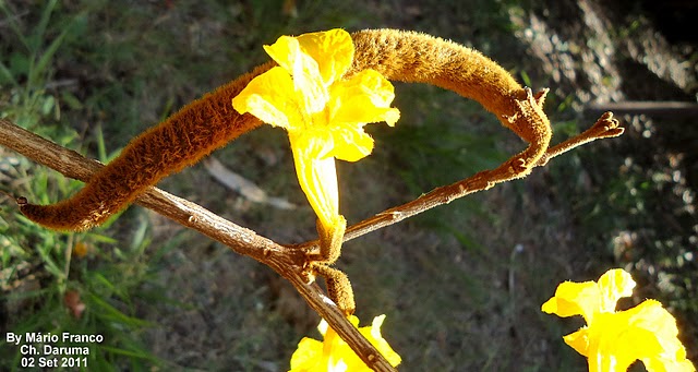Floração: suas flores desabrocham entre os meses de agosto a setembro, momento em que a árvore fica praticamente sem folhas.